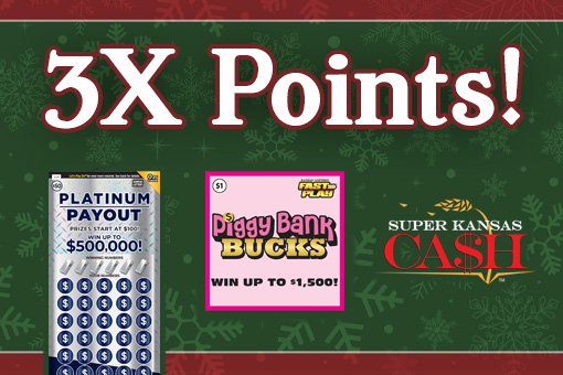 Super Kansas Cash, Piggy Bank Bucks, and Platinum Payout earn 3x Points in December!